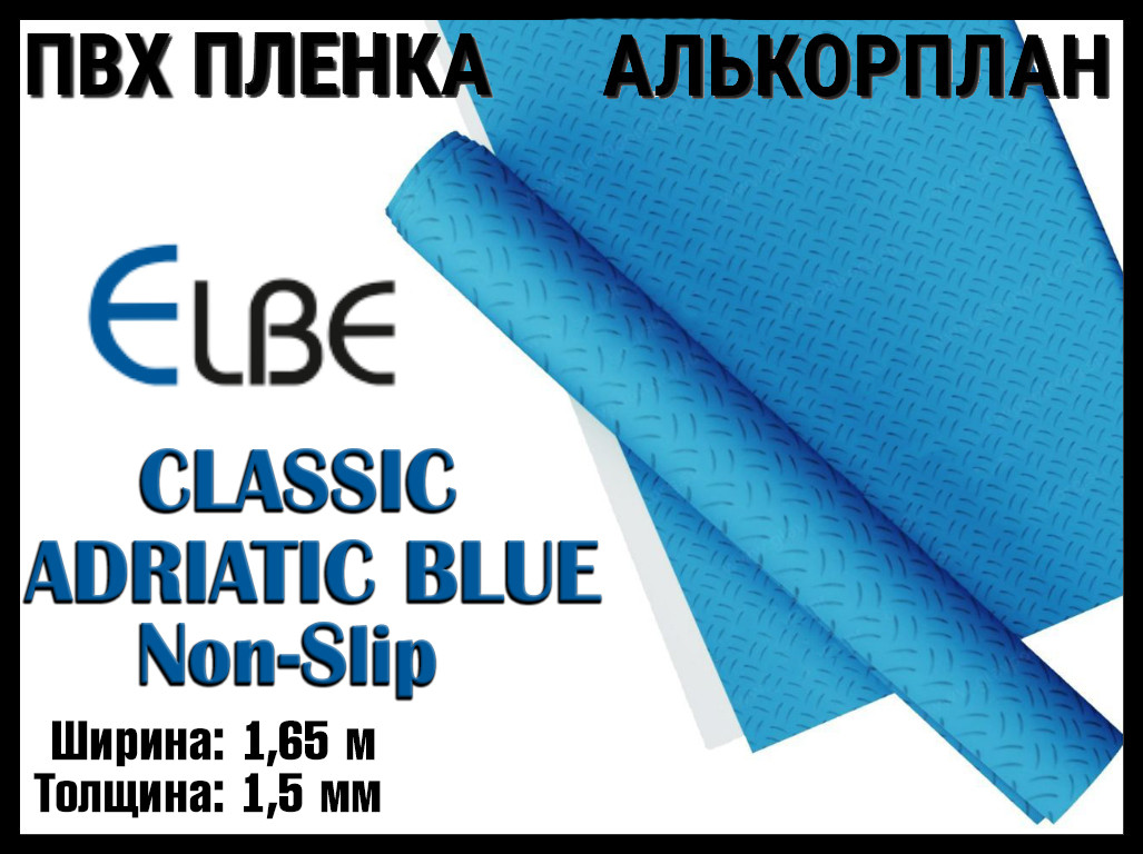Алькорплан Elbe Classic Adriatic Blue Non-Slip для бассейна (ПВХ пленка, адриатик антислип, ширина: 1.65 м.)