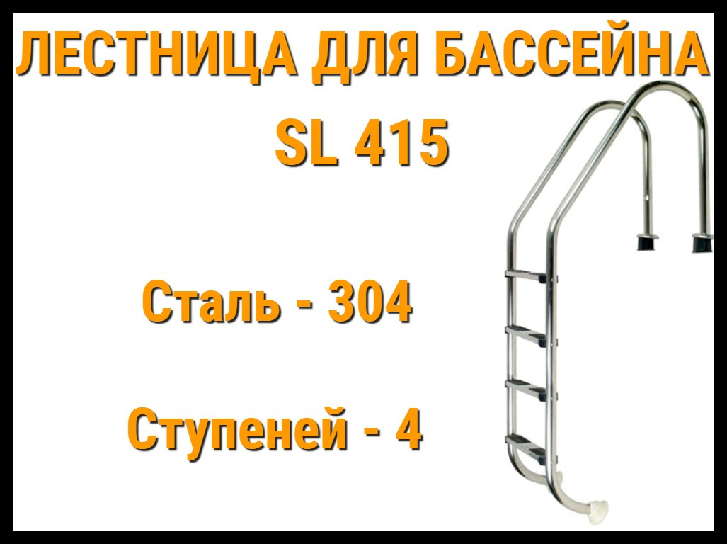 Лестница забортная SL-415 для бассейна (4 ступени, AISI-304)