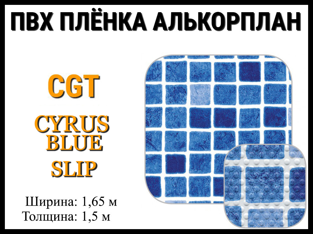Пвх пленка CGT Cyrus Blue Slip для бассейна (Алькорплан, мозаика противоскользящая, ширина: 1.65 м.)