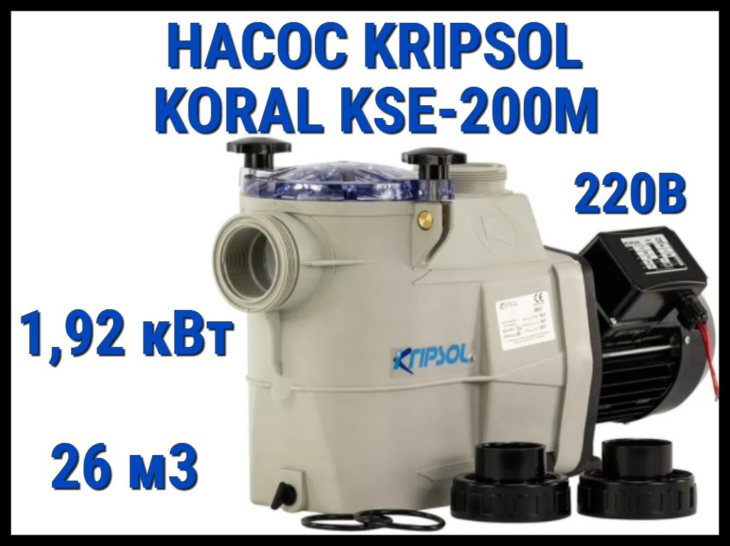 Насос для бассейна Kripsol Koral KSE-200M c префильтром (Производительность 26 м3/ч, мощность 1,92 кВт, 220В)