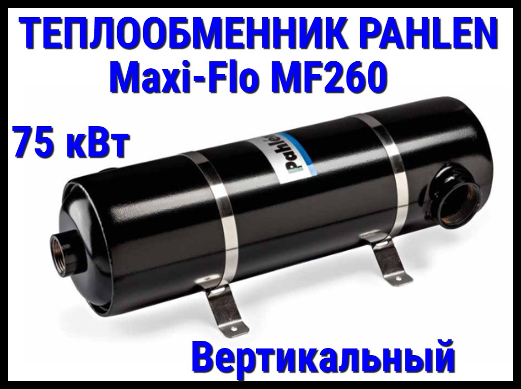 Теплообменник из нержавеющей стали Pahlen Maxi-Flo MF260 (75 кВт) - предназначен для нагрева воды и поддержания заданной температуры в бассейне. Изготовлен из нержавеющей кислотостойкой стали марки AISI-316L. Подходит для любого типа инсталляций (котлы, тепловые насосы, солнечные панели и др.). Для увеличения теплопередачи используются 37 цельнотянутых труб с распределителями потока. Теплообменники Pahlen Maxi-Flo 260 могут быть соединены в батарею соединительной муфтой.